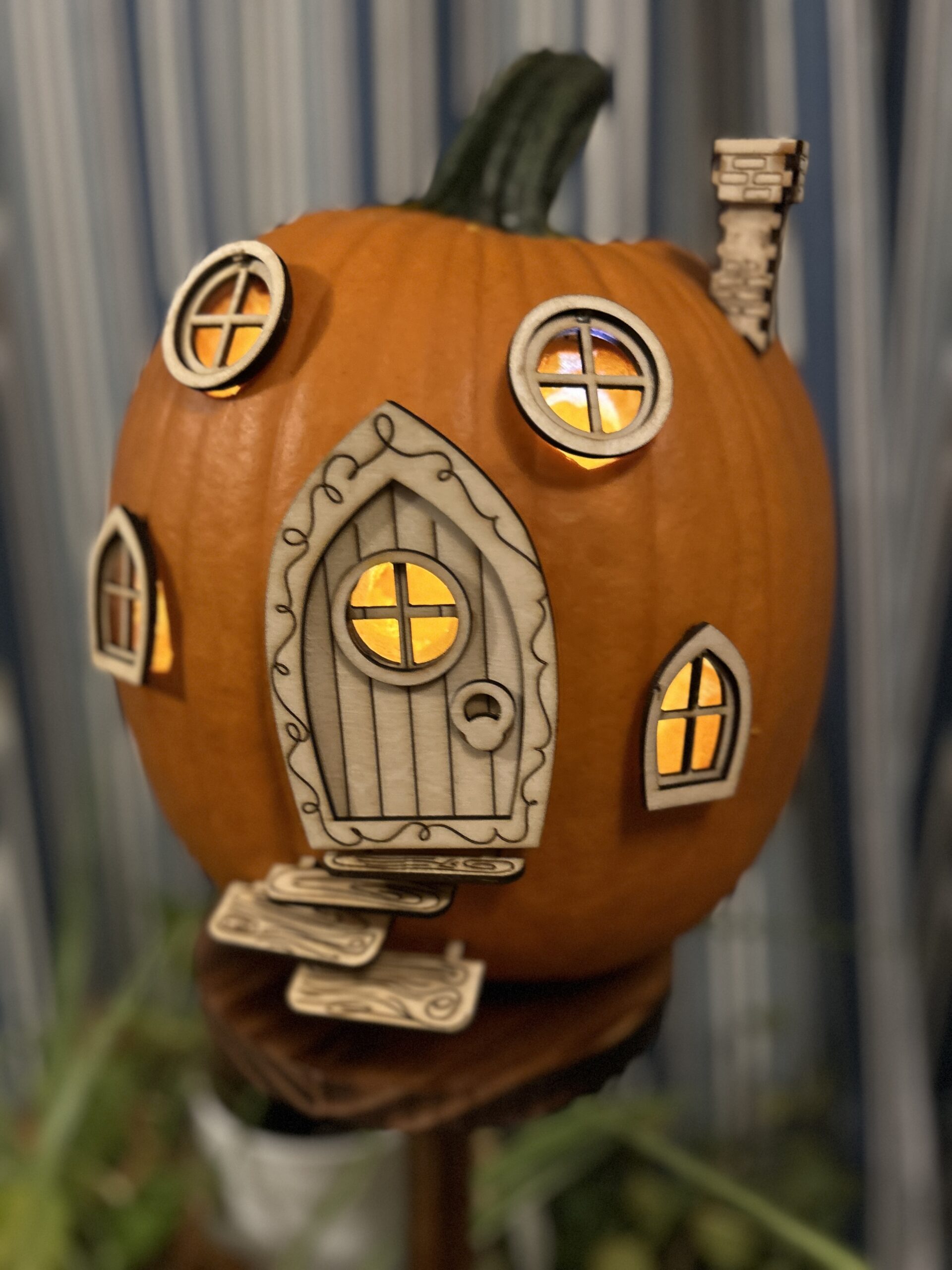 DIY Pumpkin Fairy House Kit – Unfinished wooden door, windows, and chimney to turn your carved or faux pumpkin into a magical autumn display.