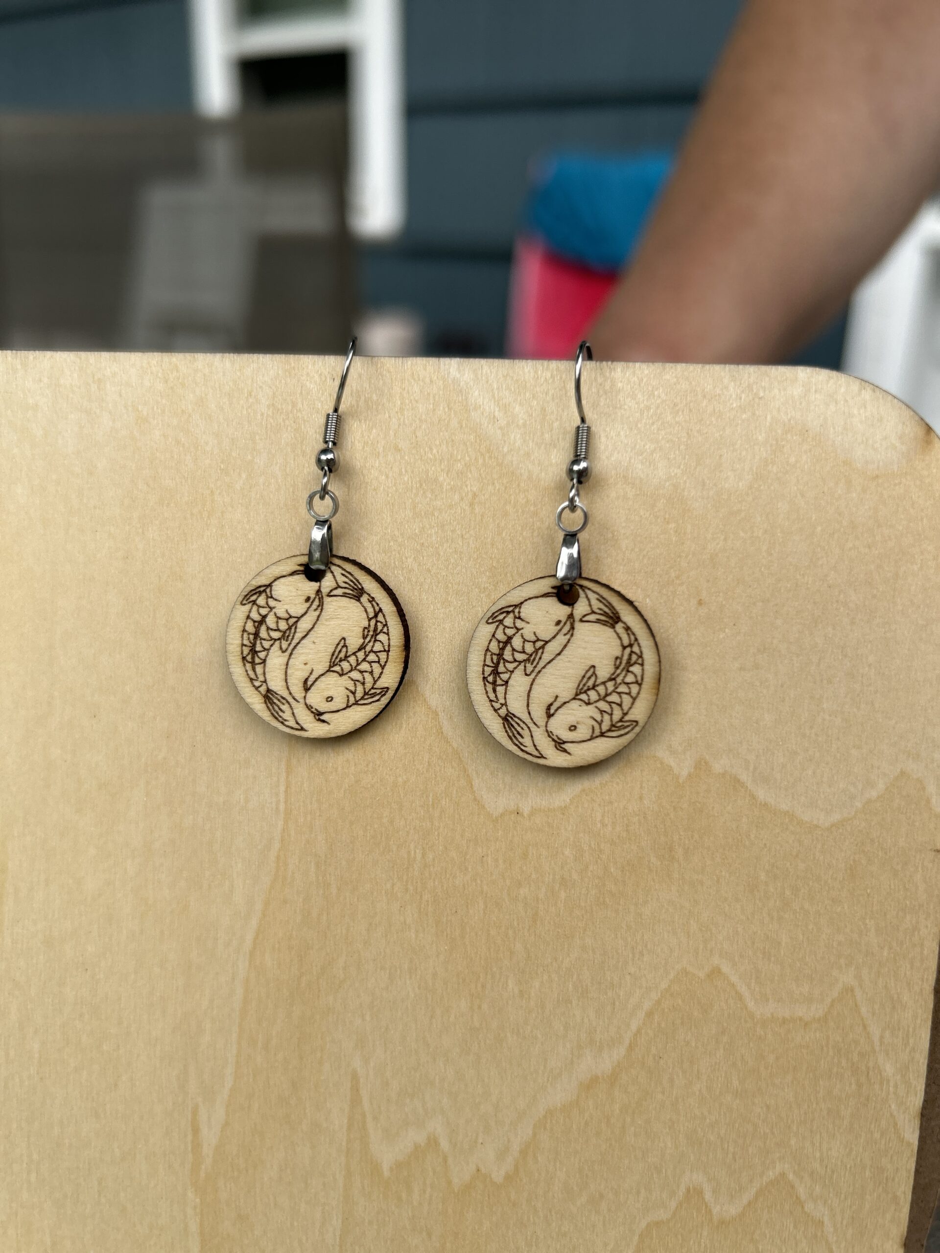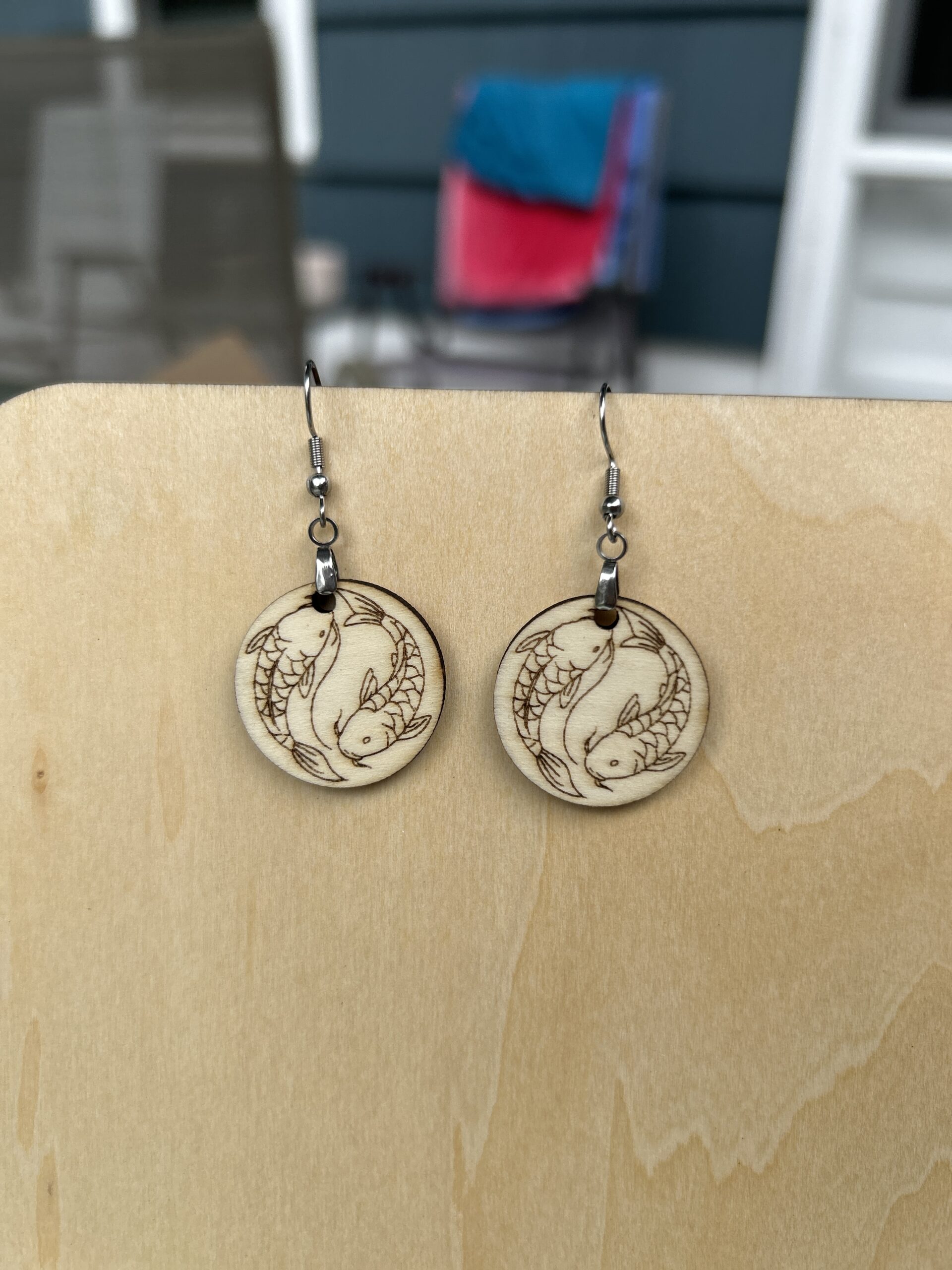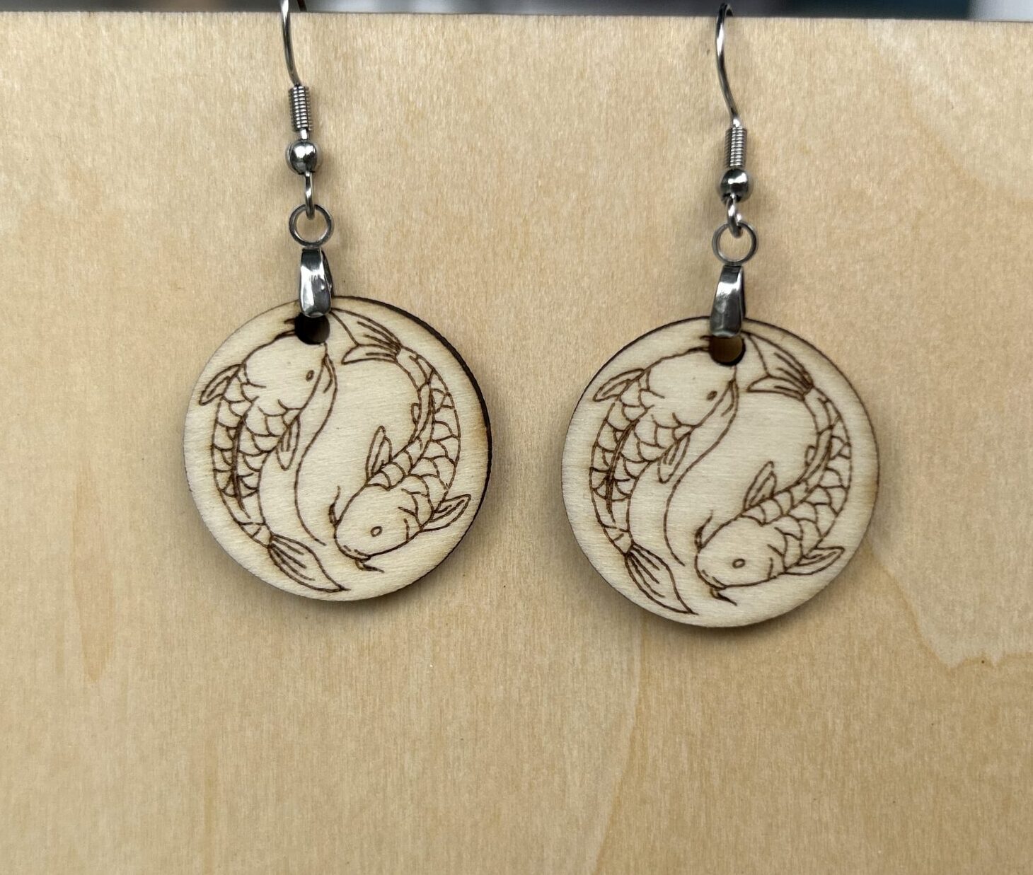 🐟☯️ Handmade Wood Koi Fish Yin Yang Earrings – Spiritual Balance Earrings – Asian Inspired Wooden Jewelry – Harmony Symbol Dangle Earrings