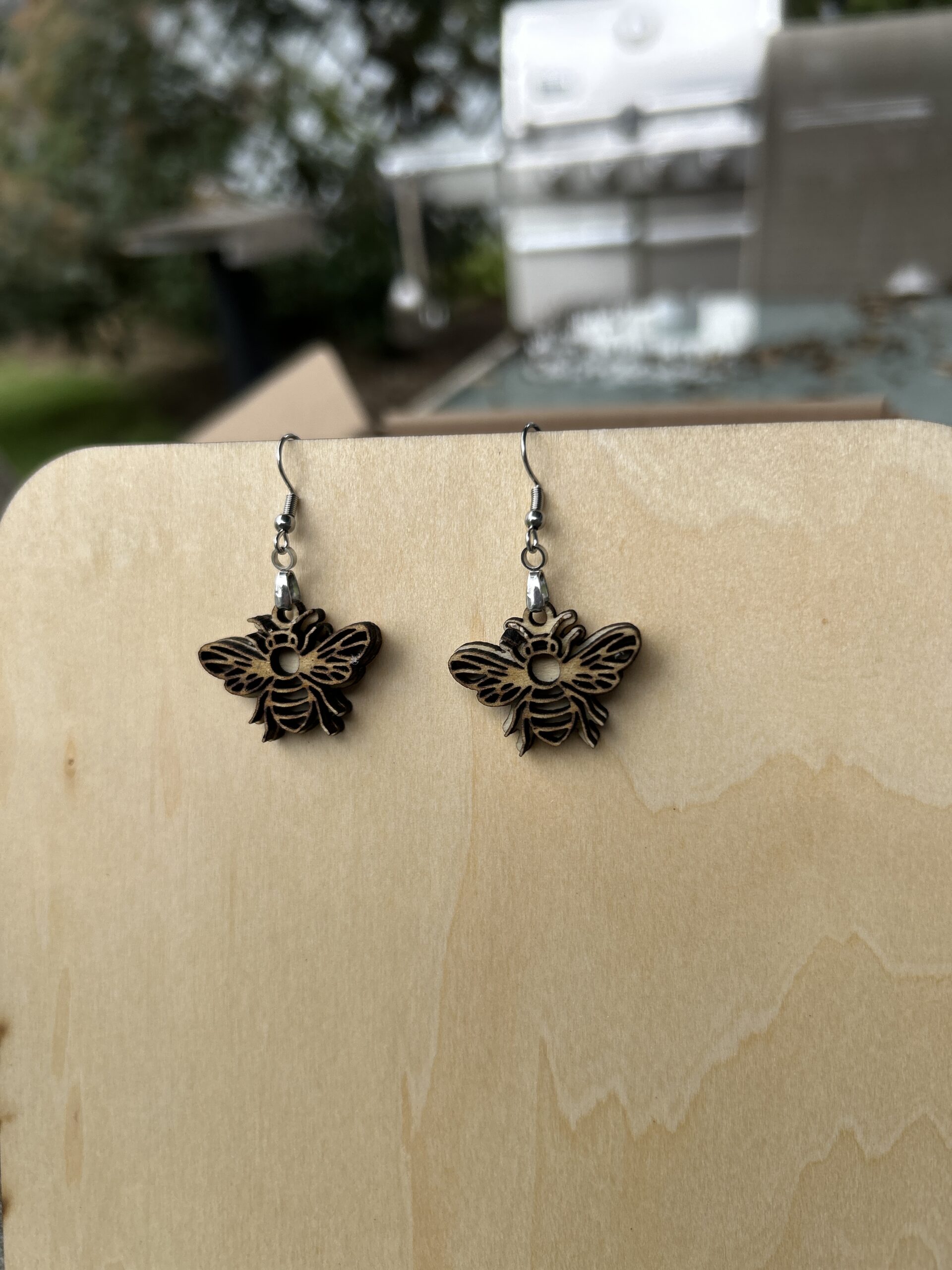 These handmade wood bee earrings feature charming bumble bee designs suspended from hypoallergenic stainless steel French hook ear wires. Crafted from lightweight natural wood, these bee dangle earrings are perfect for nature lovers and those with sensitive ears. The surgical steel French hooks ensure comfortable all-day wear while the eco-friendly wooden bee charms add a rustic, bohemian touch to any outfit. Each pair of honeybee earrings is individually handcrafted, making them unique gifts for bee enthusiasts, gardeners, or anyone who appreciates sustainable jewelry. The combination of durable stainless steel hardware and natural wood materials creates beautiful, long-lasting bee-themed jewelry that’s both stylish and environmentally conscious. These lightweight bee earrings complement both casual and dressy looks, making them versatile additions to any jewelry collection.